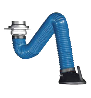 マフラーに直接取り付け排気ガスを吸引するので、消防署、自動車整備工場など屋内でエンジンを掛けていても、排気ガスが室内に充満することがありません。