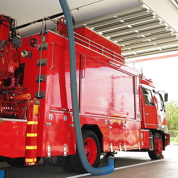 消防署にてアイドリングの排気ガスを屋外に排出する機械です。